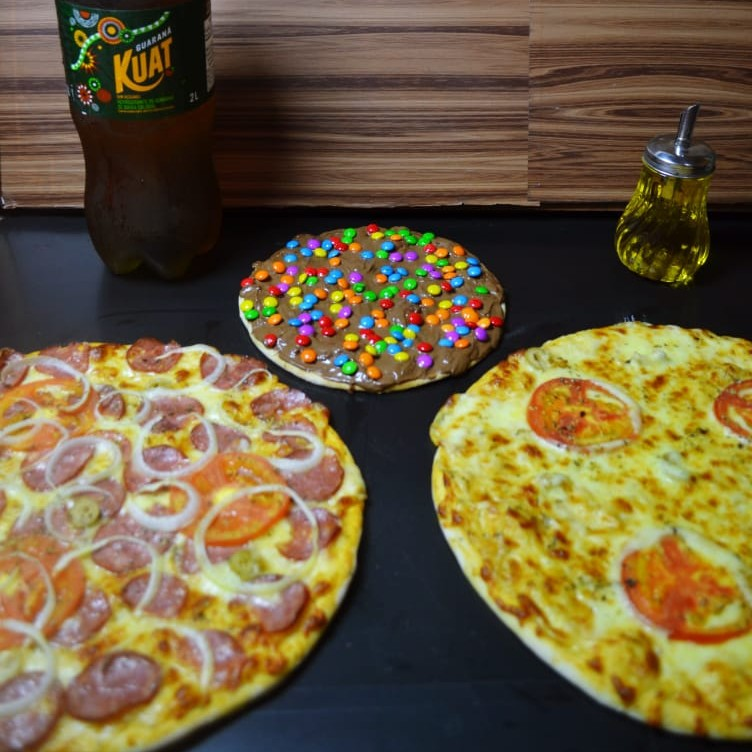 Neste combo você recebe 2 Pizzas Família 35cm + 1 Brotinho Doce e ainda leva uma Coca-Cola 2l Grátis!